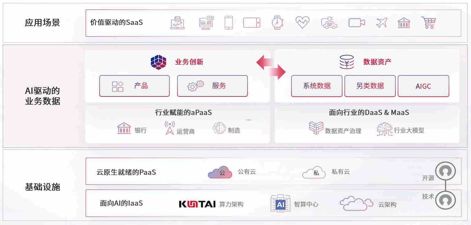 数字时代,,,,围绕企业数字化转型的关键要素,,,彩霸王数码开创性的提出数云融合战略和技术体系框架,,,着力在云原生、、、数字原生、、、AI原生和信创产业上架构产品和服务能力,,为处在不同数字化转型阶段的快消零售、、、、汽车、、金融、、、、医疗、、政企、、教育、、运营商等行业客户提供泛在的敏捷IT能力和融合的数据驱动能力,,,,构建跨界融合创新的数字业务场景和新业务模式,,,助力企业级客户建立面向未来的核心能力和竞争优势,,全面推动社会的数字化、、、、智能化转型升级。。。